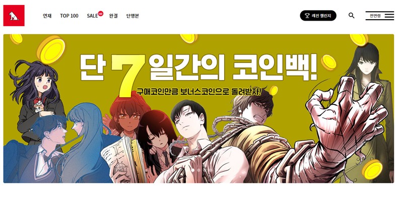 오늘만 무료 서비스가 있는데, 다양한 종류들의 만화를 하루동안 무료로 볼 수 있게 된다. 부분유료화 서비스이긴 하지만 대부분의 만화를 일부 무료로 볼 수 있는것 만으로도 괜찮다고 판단된다.