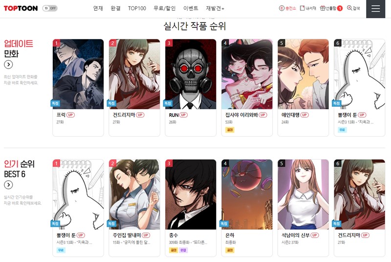여러 만화중에 무료로 볼 수 있는것이 많아서 사용자들이 많이 이용하는곳 중 하나이다.