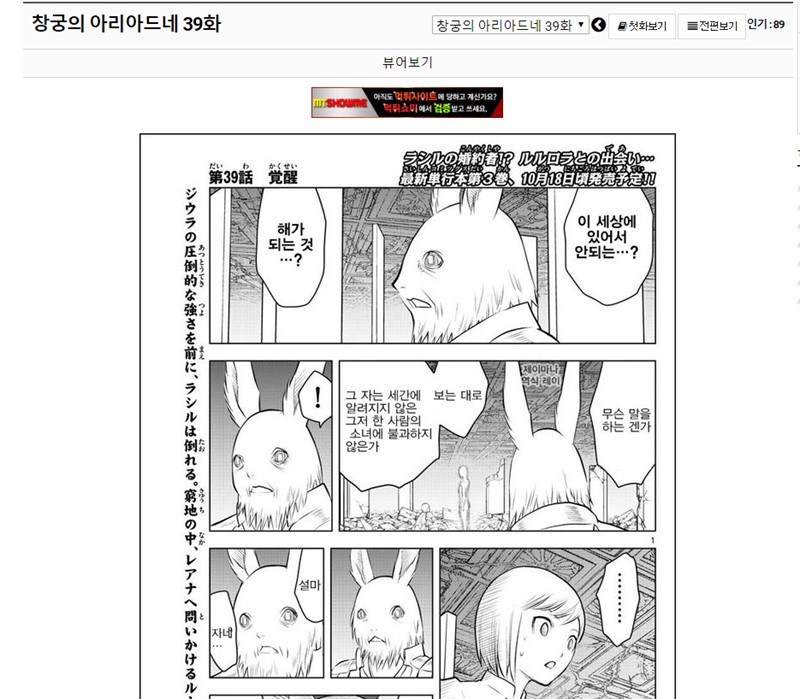 창궁의 아리아드네 39화도 문제 없이 번역되어 볼 수 있었다. 마루마루는 일본 만화를 통번역하는 대표적인 만화 전문 사이트이다.