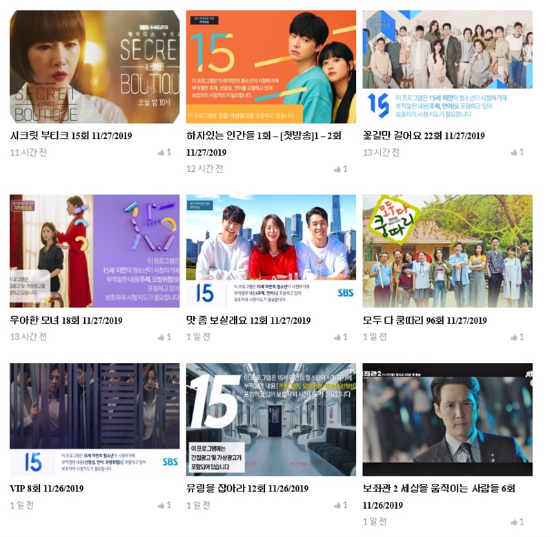 영화 뿐만 아니라 최신 드라마가 방영되고 있는 상태도 확인할 수 있었는데, 시크릿 부티크, 하자있는 인간들 1회, 꽃길만 걸어요 22회, 우아한 모녀 18회 등이 보인다.
