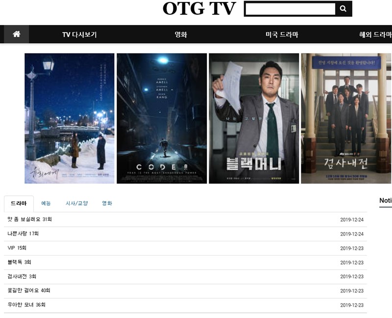 TV 다시보기 | 2019년 12월 24일 16시 14분오티지티비(otgtv) 사이트는 무료로 드라마, 영화, 미국 드라마, 해외드라마를 다시볼 수 있도록 서비스 해주는 무료 웹사이트이다. 사이트 접속 주소가 지속적으로 변경되는데는 이유가 있는것 같다.