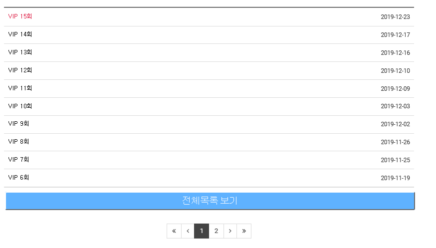 그리고 조금만 화면을 아래쪽으로 이동하게 되면, 전체 목록보기도 가능하다. 지금까지 VIP 드라마가 몇회차까지 진행되었고, 1회부터 무료로 시청이 가능하도록 되어 있다.