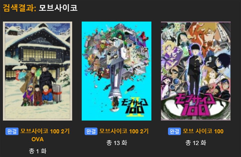 그럼 모브 사이코100 2기와 모브 사이코100 2기 OVA 모브 사이코100가 검색결과에 나타난다.