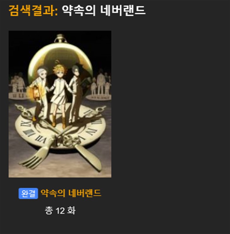 약속의 네버랜드라고 검색한다. 결과 결과가 1개만 나타나게 된다.