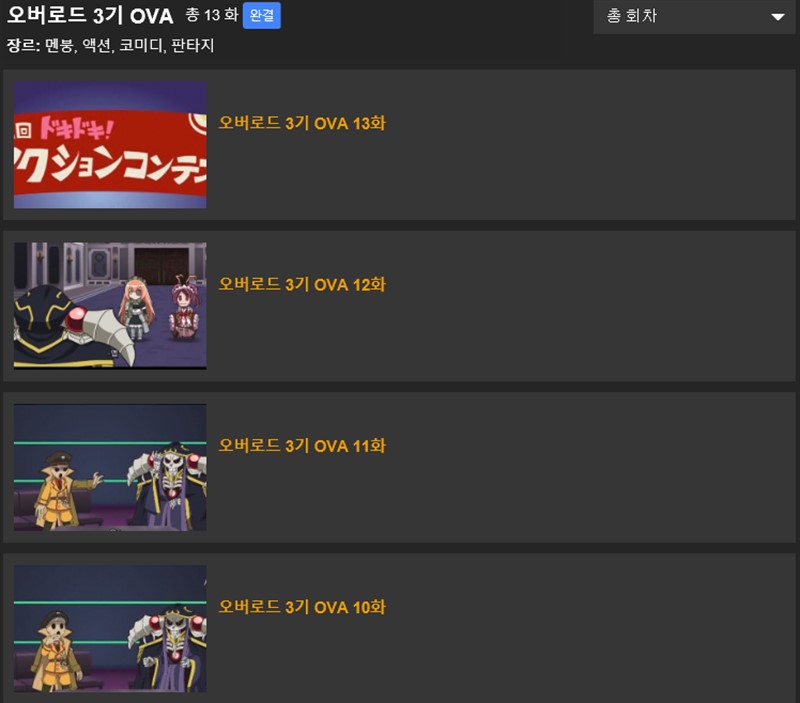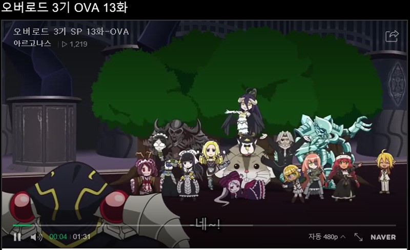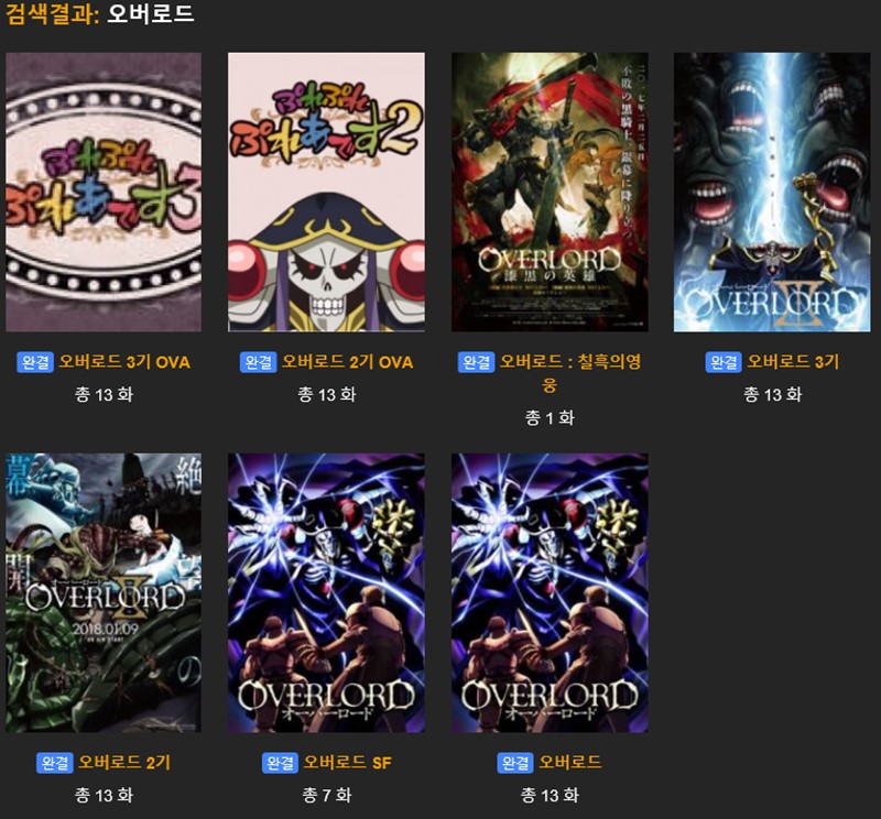 오버로드가 여러개가 검색결과에 노출되는데, 가장 최근의 오버로드 3기 OVA를 선택해서 시청하자. 물론 오버로드 3기도 시청이 가능하다.