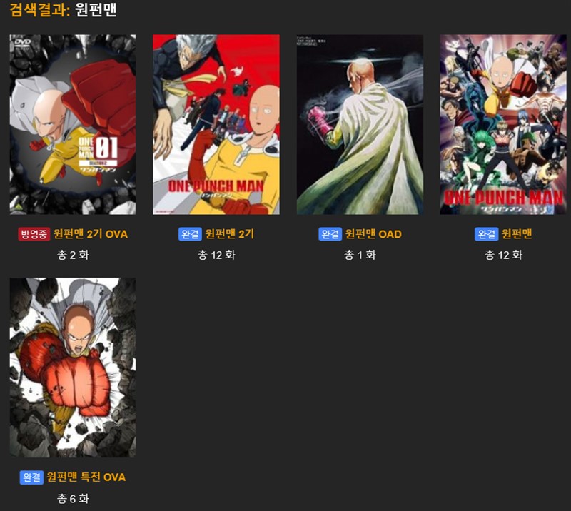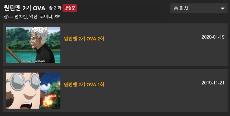 오오애니에서 원펀맨 시청하기