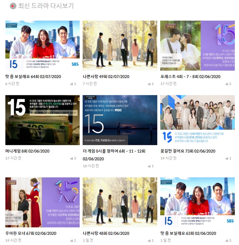 그밖에 아래쪽으로 화면을 내려가다보면 최신 드라마 다시보기를 확인할 수 있다. 맛좀 보실래요 64회, 나쁜사랑, 49회, 포레스트 4회, 머니게임 8회, 더 게임 0시를 향하여 6회, 꽃길만 걸어요 73회, 우아한 모녀 67회, 나쁜사랑 48회 등이 있다.